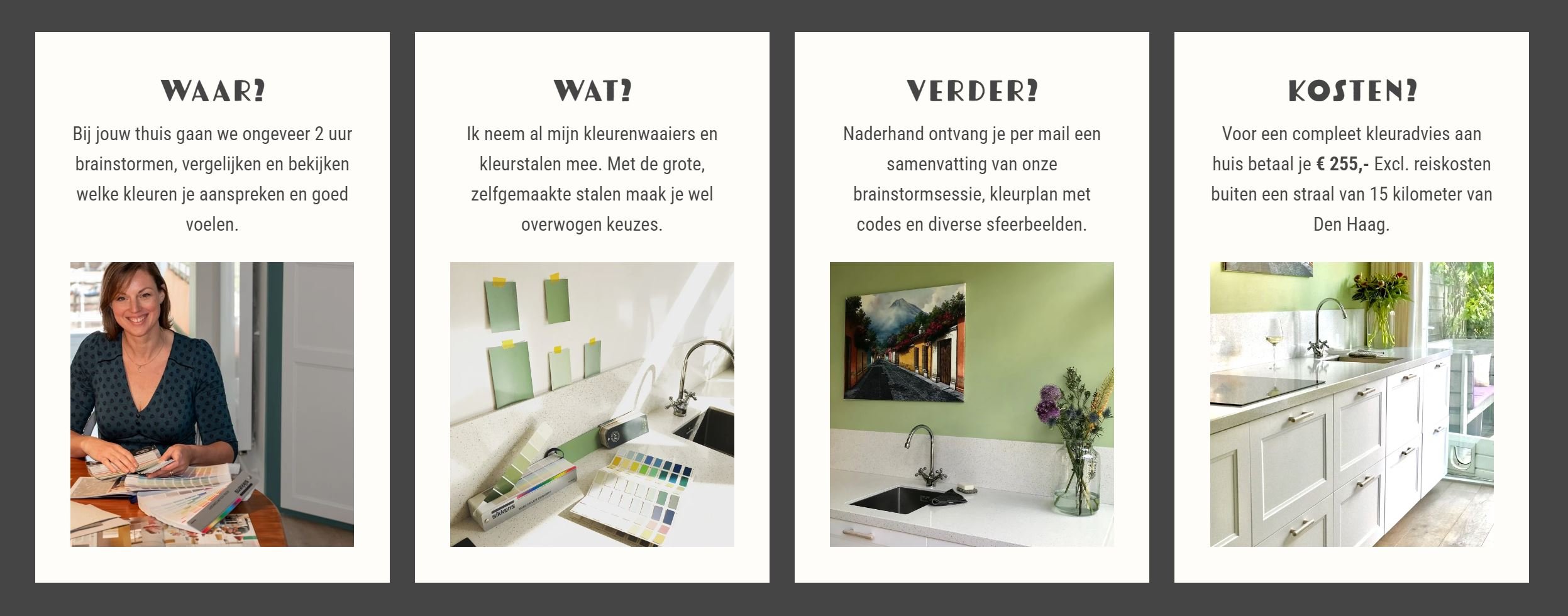 Je geeft wat extra geld uit aan advies, maar wanneer je de boel weer over moet doen omdat het niet het gewenste resultaat is, kost het je meer geld en energie. Daarbij kun je met de visualisaties bij de hand afspraken maken met de vakmensen die het gaan uitvoeren en maak je een weloverwogen kleurkeuze! No more color stress ;)